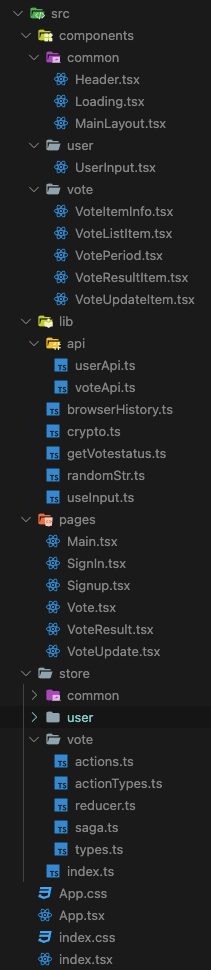 기본적인 스펙은 react-router, redux-saga를 썼을 때의 나만의 폴더 트리를 정리해보았다.