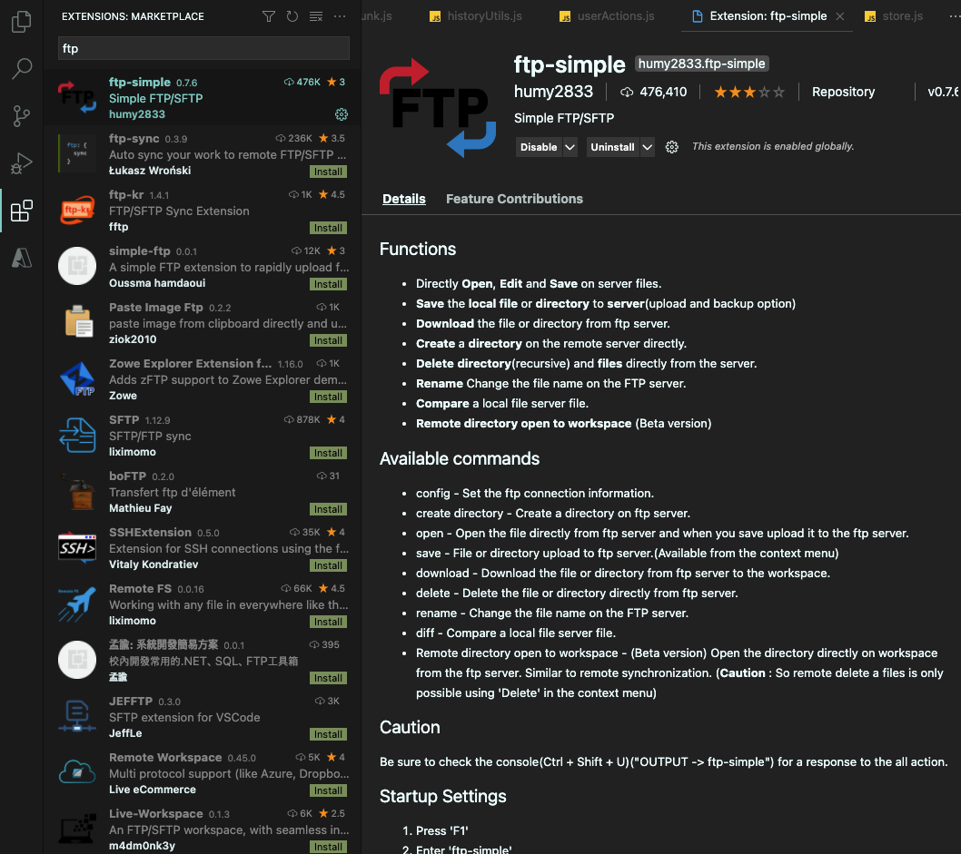 1. 일단 ftp-simple 익스텐션을 설치한다.